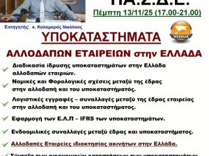 13-11-2025 Υποκαταστήματα αλλοδαπών εταιριών στην Ελλάδα με τον κ. Νικόλαο Καλαμαρά