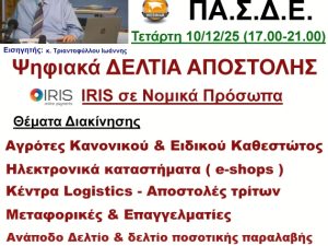 10-12-2025 Ψηφιακά Δελτία Αποστολής – Θέματα Διακίνησης – IRIS Νομικών Προσώπων με τον κ. Ιωάννη Τριανταφύλλου