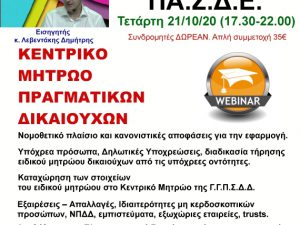 21/10/2020 ΚΕΝΤΡΙΚΟ ΜΗΤΡΩΟ ΠΡΑΓΜΑΤΙΚΩΝ ΔΙΚΑΙΟΥΧΩΝ – Εισηγητής : Λεβεντάκης Δημήτρης