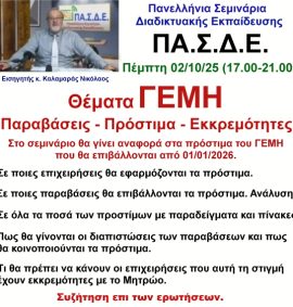 02-10-2025 ΘΕΜΑΤΑ ΓΕΜΗ Παραβάσεις – Πρόστιμα – Εκκρεμότητες με τον κ. Νικόλαο Καλαμαρά
