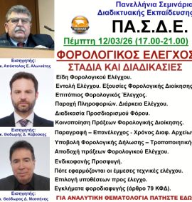 11/04/2018 – ΕΚΤΑΚΤΟ Σεμινάριο το νέο έντυπο Ε3- Εισηγητής : Μιχελινάκης Ευάγγελος
