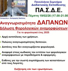 19-02-2026 Αναγνωρισιμότητα Δαπανών και Δήλωση φορολογικών αναμορφώσεων 2025 με τον κ. Νικόλαο Καλαμαρά